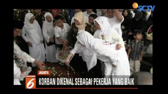 Seperti ditayangkan Liputan6 SCTV, Senin (5/11/2018), istri dan ketiga anaknya tidak kuasa menahan tangis saat peti jenazah almarhum diturunkan ke liang lahat. Kerabat, sanak saudara serta rekan kerja almarhum hadir dalam proses pemakaman ini.