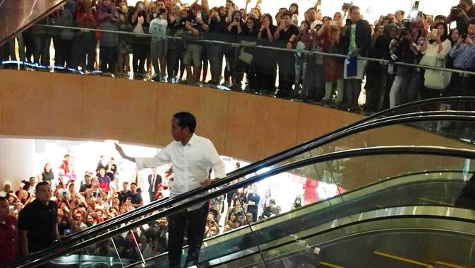 Dalam kunjungannya itu, Jokowi dikerumuni masyarakat yang berada di sekitar Grand Indonesia, Jakarta, Sabtu (20/4/2019).