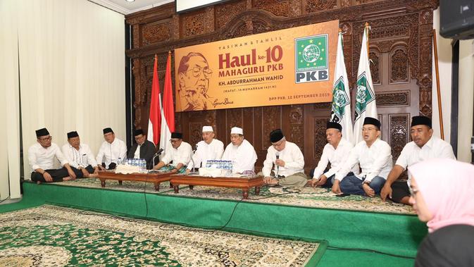Liputan6.com, Jakarta - Ratusan keluarga besar Partai Kebangkitan Bangsa (PKB) menggelar Haul KH Abdurrahman Wahid atau Gus Dur, Kamis malam 12 September 2019, di kantornya, Jakarta Pusat.