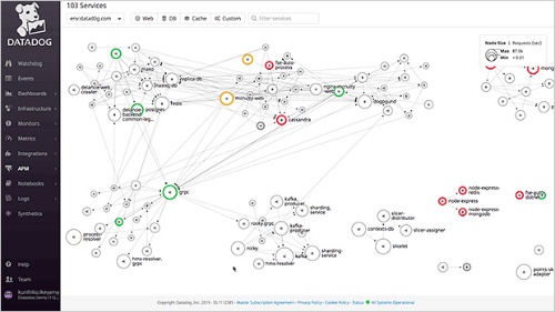米Datadog(日本法人はDatadog Japan)の「Datadog」は、クラウド型のシステム監視サービスである。システムの稼働状況などをリモートから一元的に監視・可視化できる。単一のダッシュボードを介して、マルチクラウド環境のインフラやアプリケーションを対象に、稼働状況や性能を監視できる。