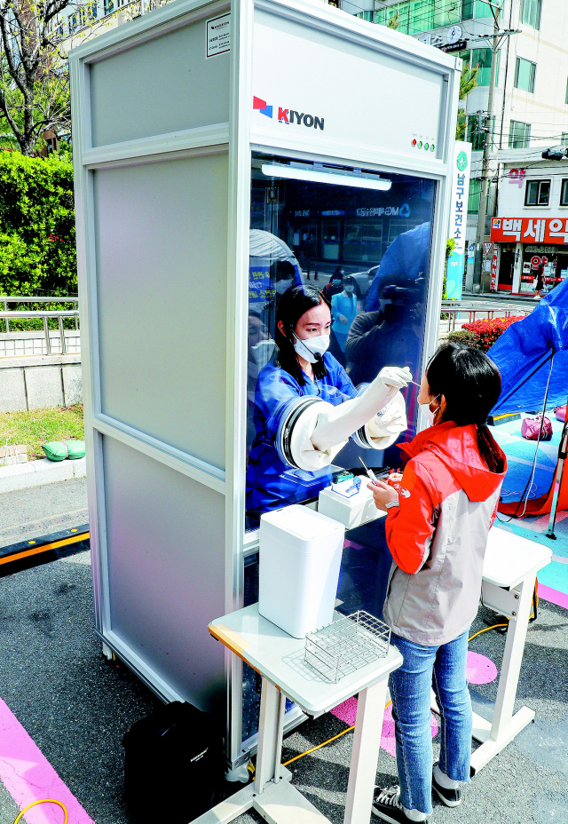 속보=전 세계 최초로 부산에서 선보인 ‘초스피드 코로나19 워킹스루(사진·도보진료)’ 부스(부산일보 3월 31일 자 8면 등 보도)가 코로나19 검사 분야의 국제 표준이 될 전망이다.